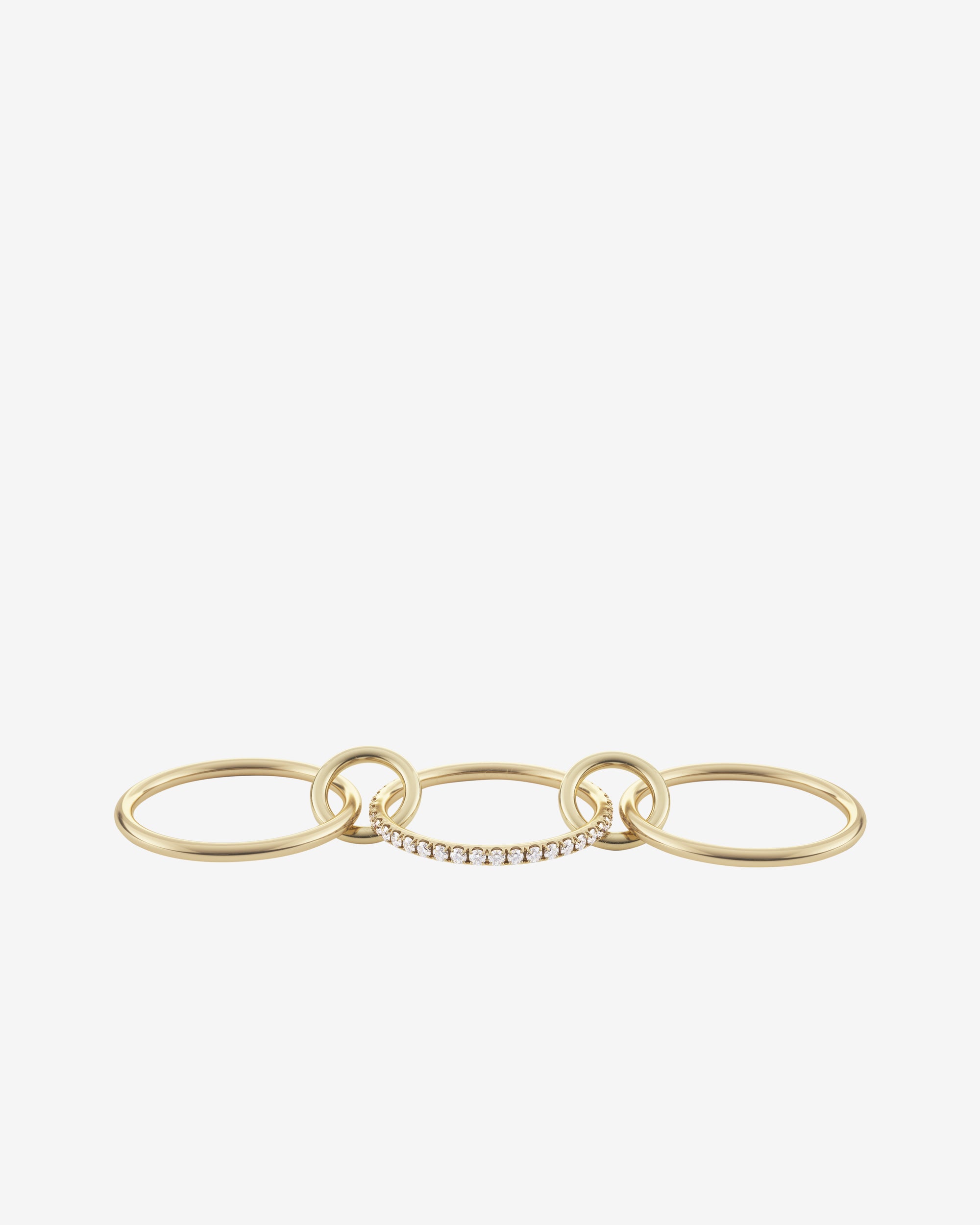 The Sonny ring was forged with simplicity in mind. Its core band of pavé diamonds is framed by two outer bands of solid metal, linked by two matching connectors. The Sonny features thin 1.7mm bands, and is perfect for stacking. Ideally suited for everyday wear, the Sonny features a fully-customizable design, with multiple fine metal options including: rose, yellow and white gold, all of 18k purity. Each Sonny is individually handmade in Los Angeles.