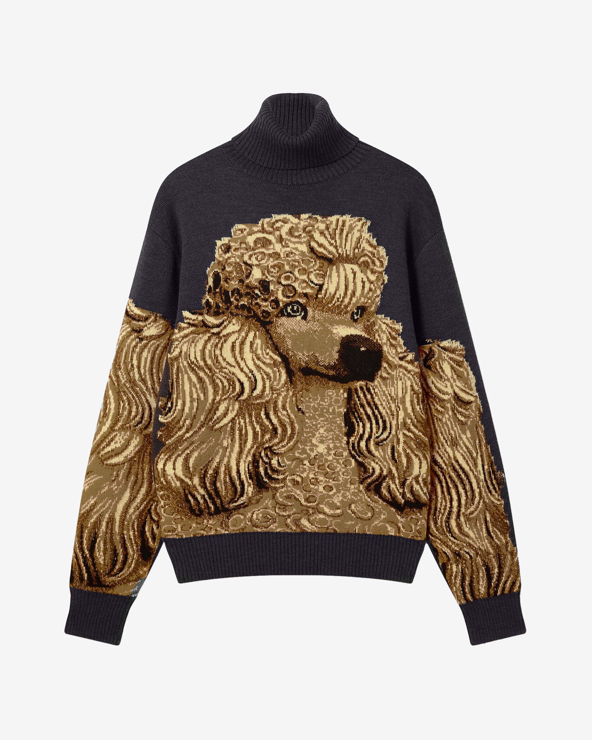 Crafted from RWS-certified wool and shaped to a classic turtleneck silhouette, this oversized jumper is topped with a Poodle graphic designed in collaboration with artist Jeff Koons.