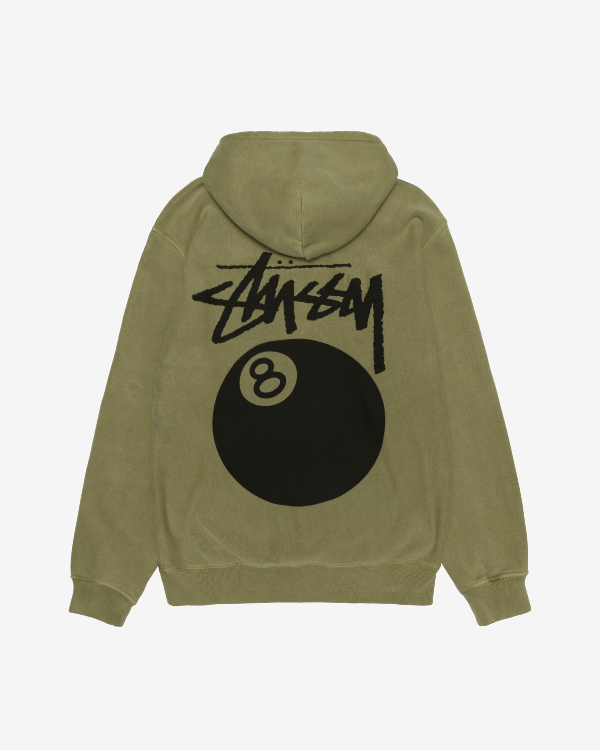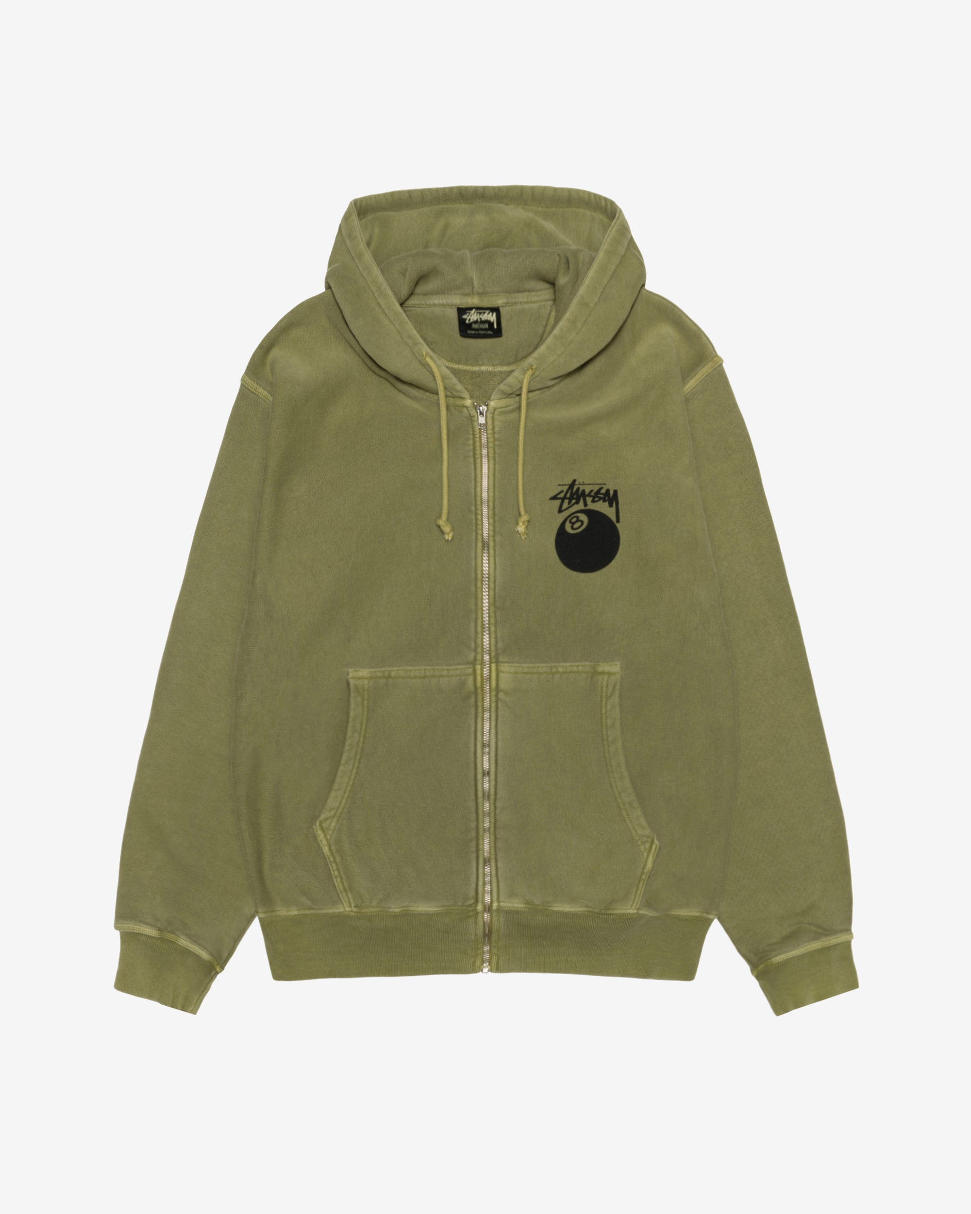 Stüssy Men's 8 Ball Pig. Dyed Zip Hoodie Olive