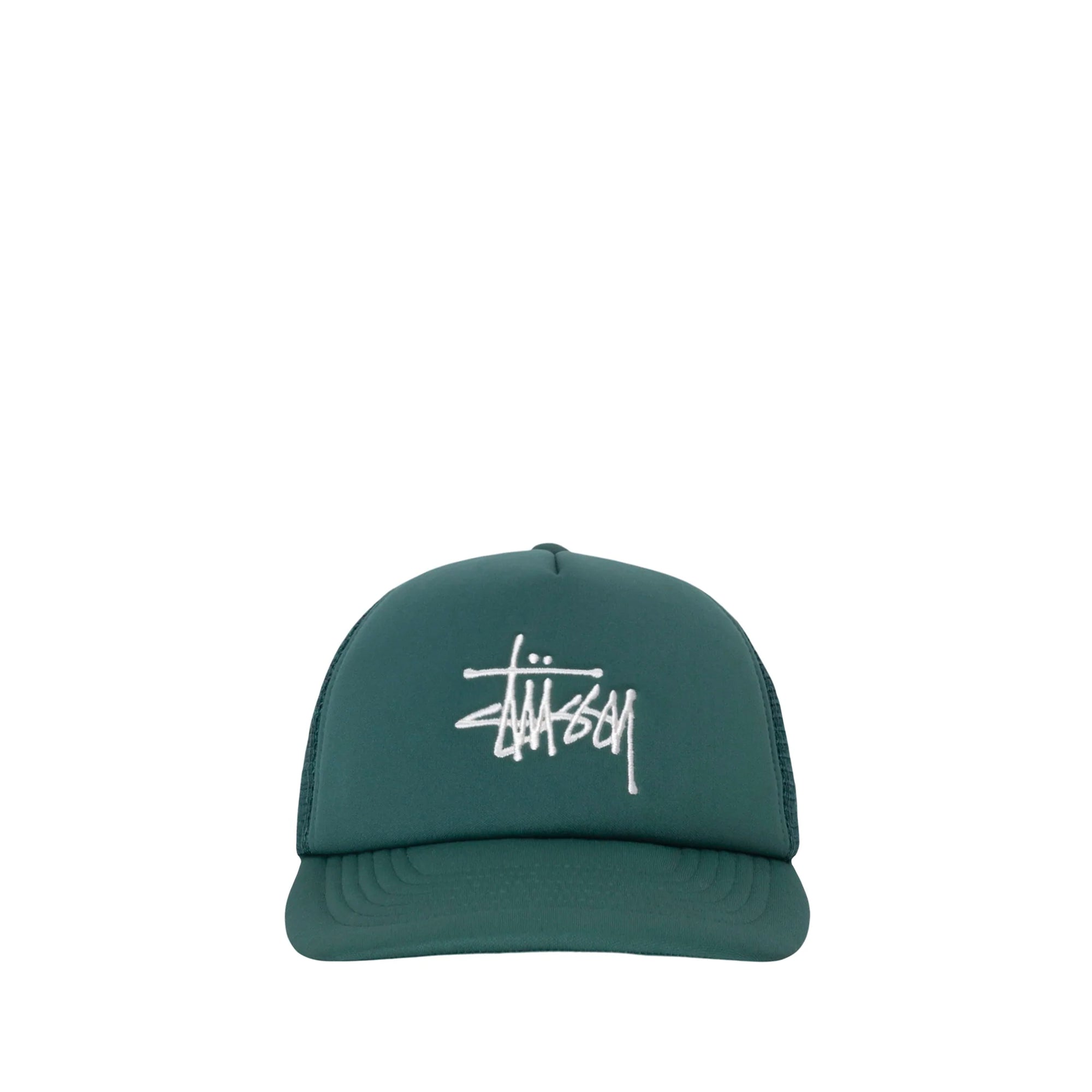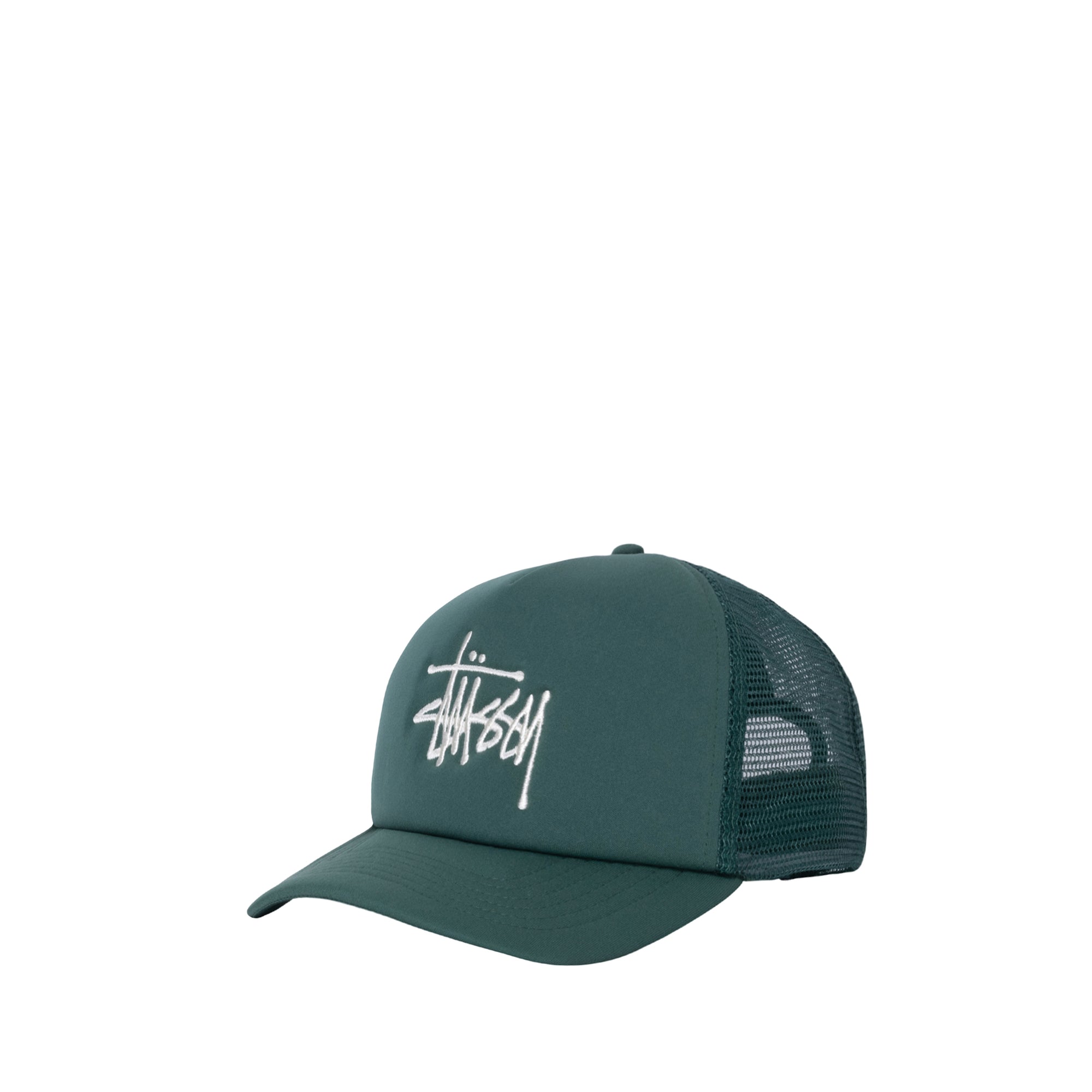 Stüssy big basic logo embroideryMesh back panelsTerry cloth sweatbandSnapback closureStüssy stock flag label at backUnisex