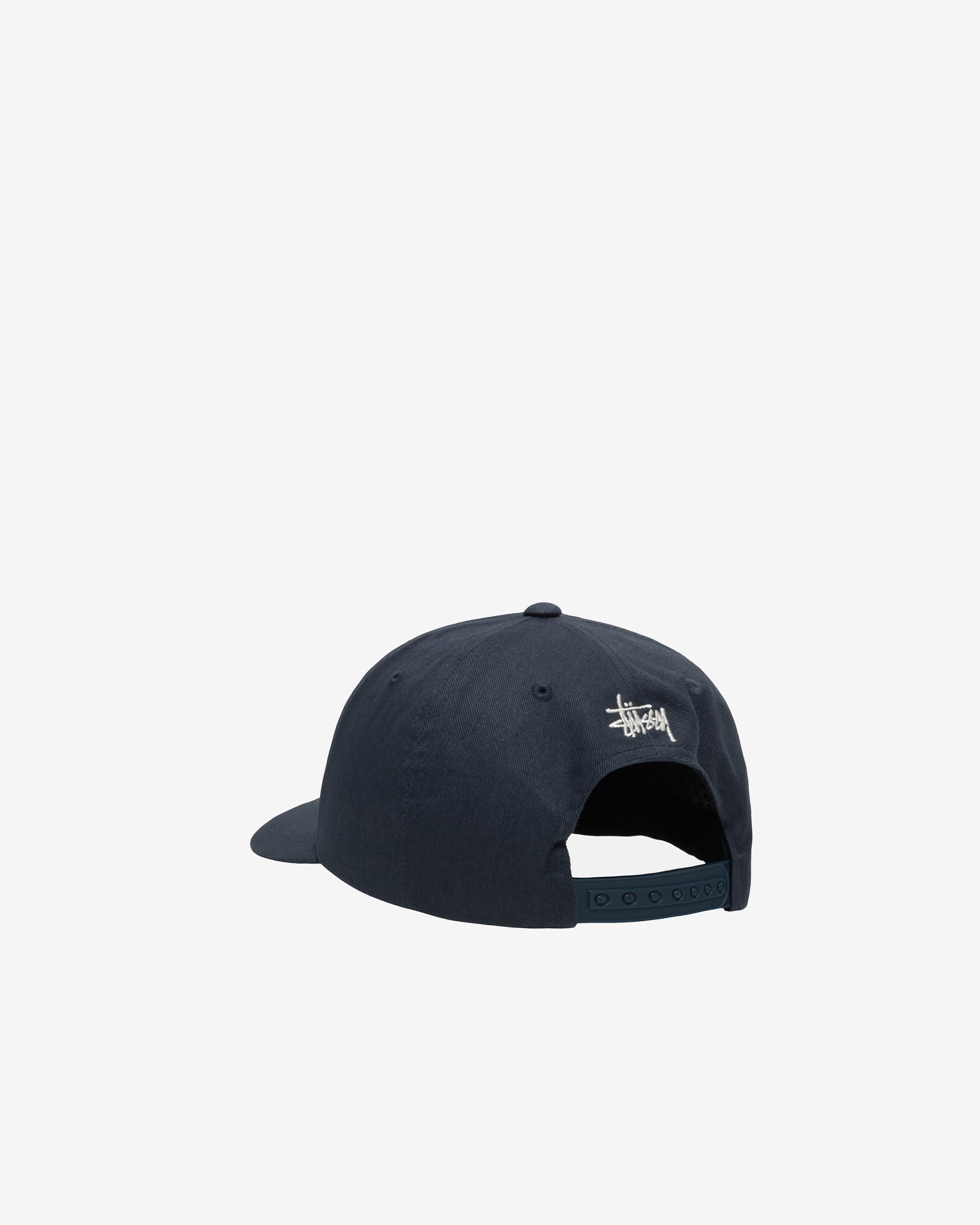 Low profile six panel cap in cotton. Stüssy SS graphic in raised embroidery across the front, and basic stock logo at the back.