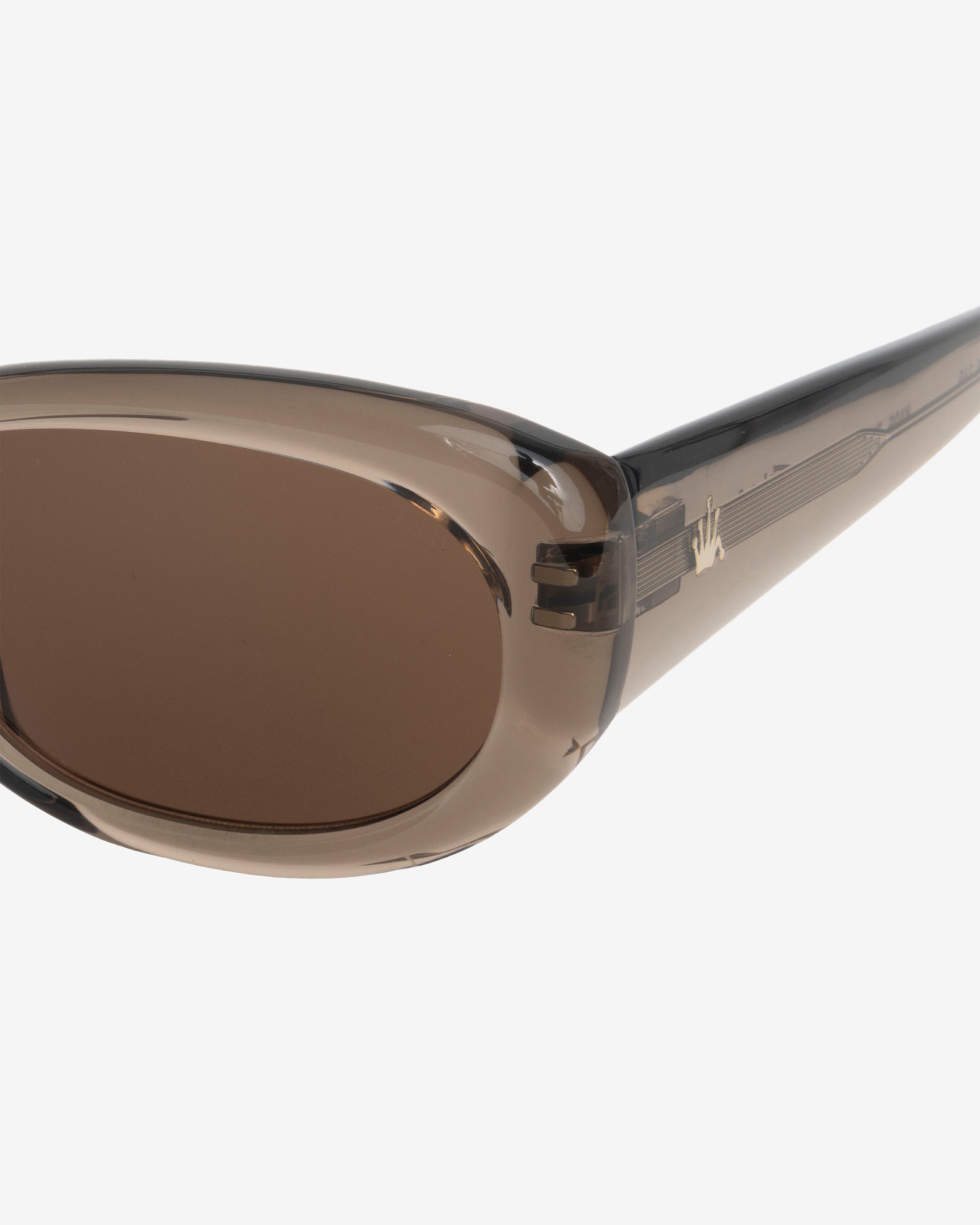 Acetate sunglasses with a rectangular frame and tinted lenses. Stüssy branding at the exterior temples and eyegear logo at the inside. Made in Japan.