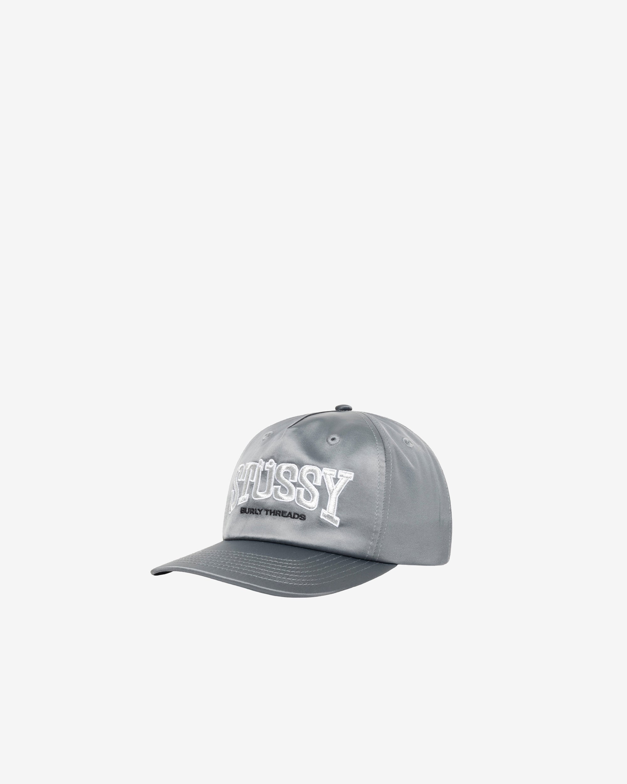 Mid-depth five panel cap with Burly Threads logo embroidery. Snapback closure Precurved brim One size Unisex Material: 97% polyester / 3% spandex Imported