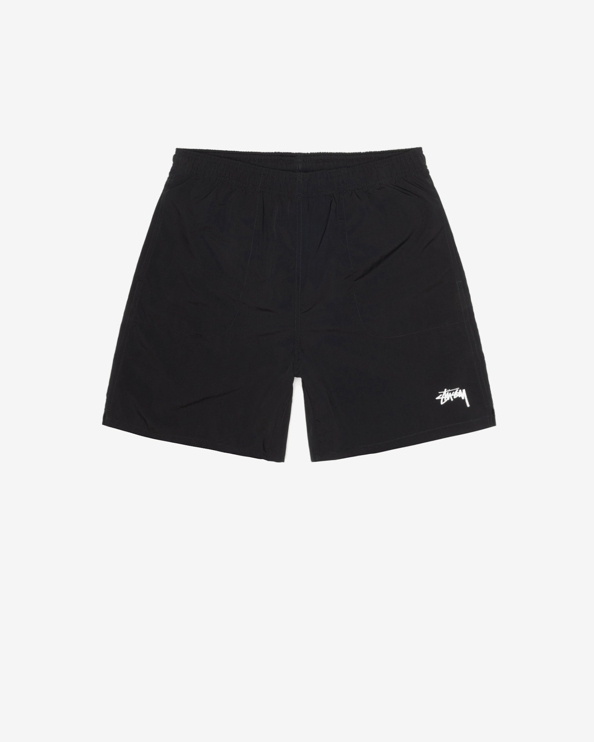 Relaxed fit mesh short with an elastic waist and internal drawcord. Stüssy basic logo printed on left leg.
