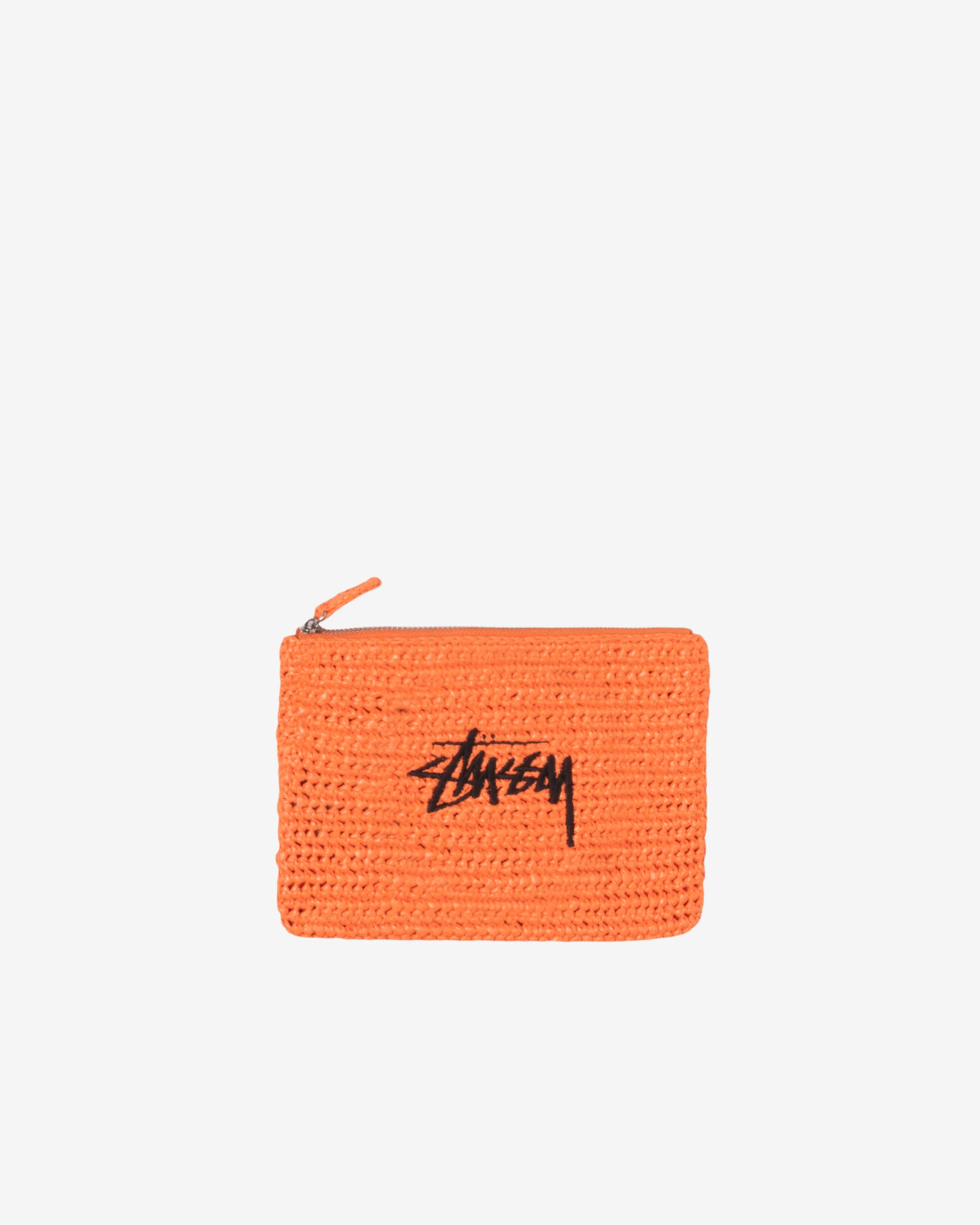 Woven zip pouch with Stüssy stock logo embroidery at front.