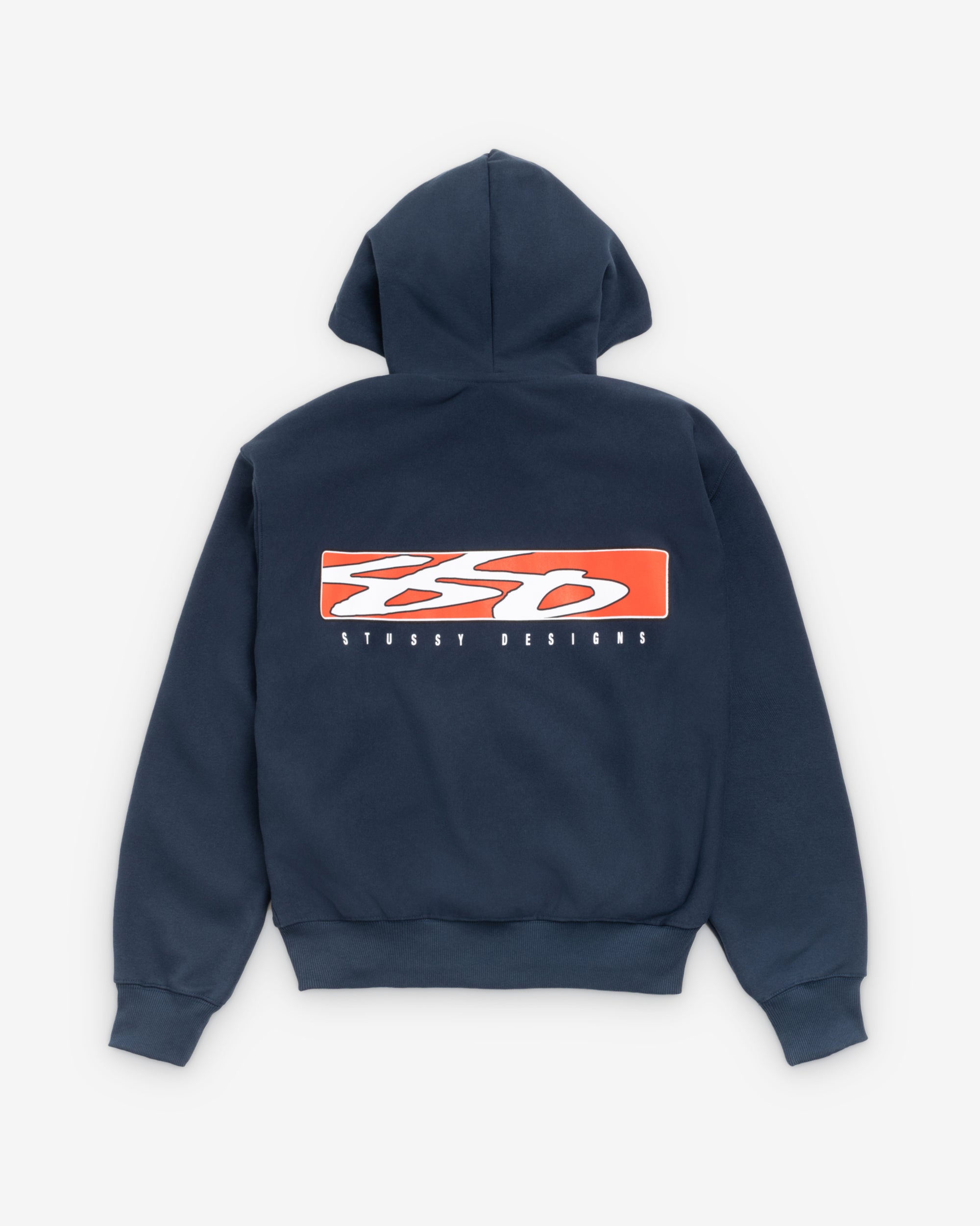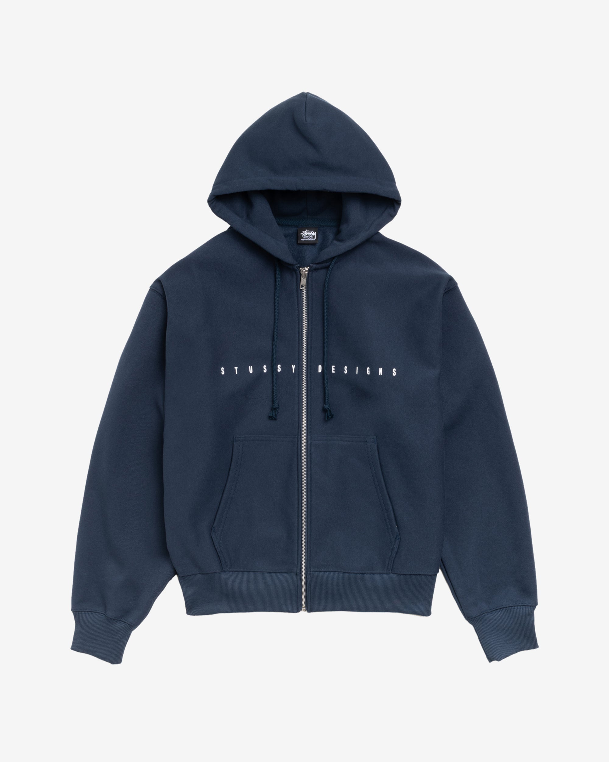 Relaxed fit zip-front hoodie Heavyweight 430gsm cotton blend fleece YKK metal zip Round drawcord in hood Screenprinted graphics at front and back Ribbed cuffs and hem Patch pockets Unisex Material: 75% cotton / 25% polyester Imported