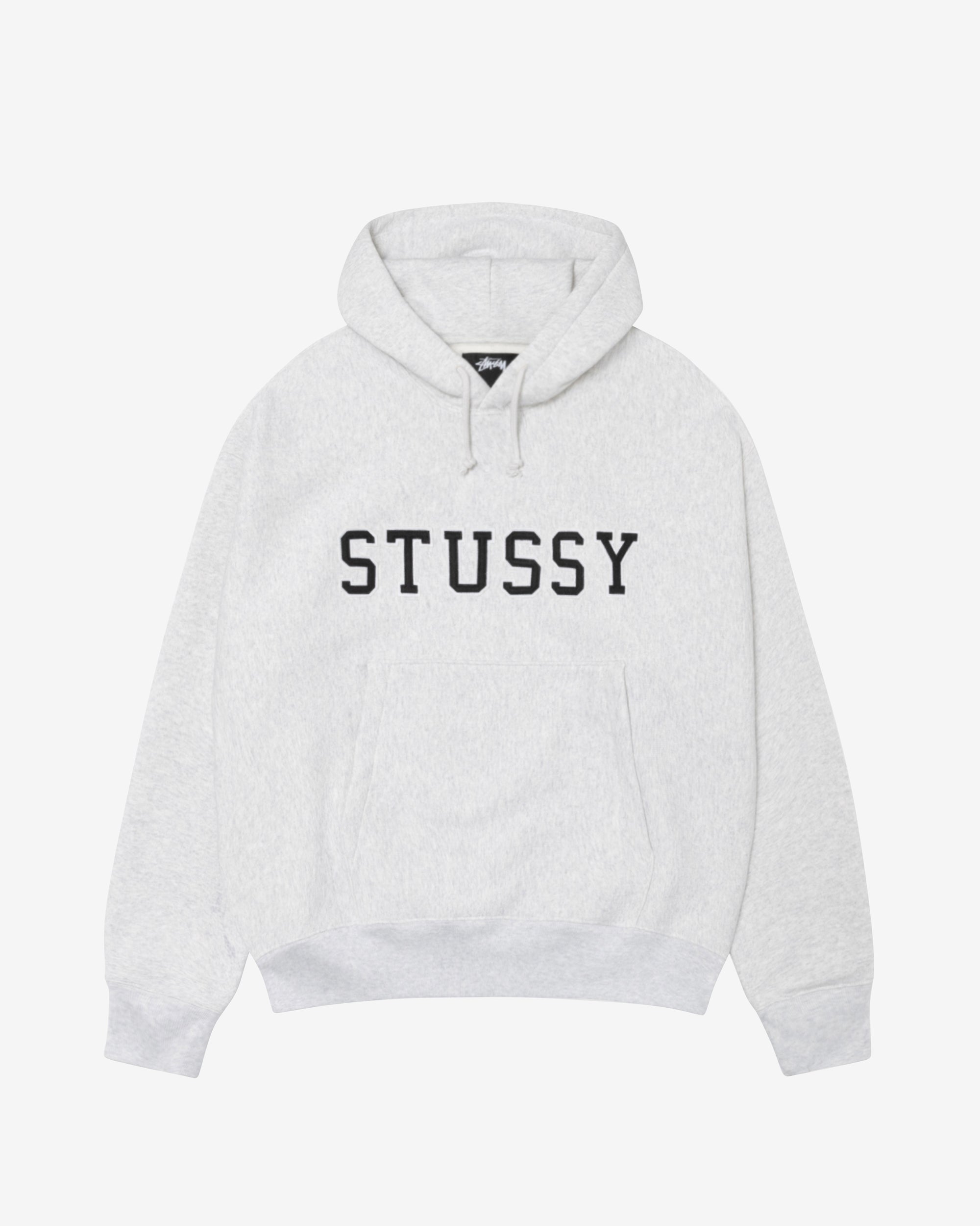 Boxy fit fleece hoodieHeavyweight 495gsm cotton blendCrossover hood with cotton drawcordStüssy logo in felt applique across frontKangaroo pocketSlim rib at cuffs and hem (1.5" / 3.8cm)