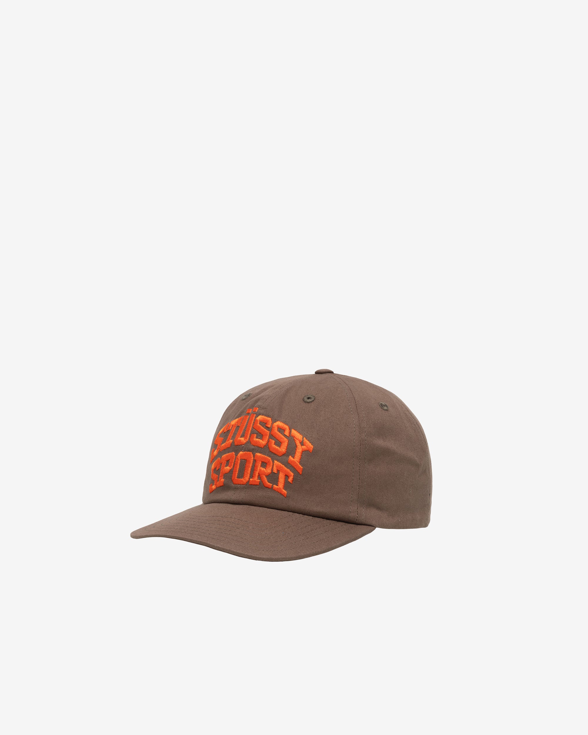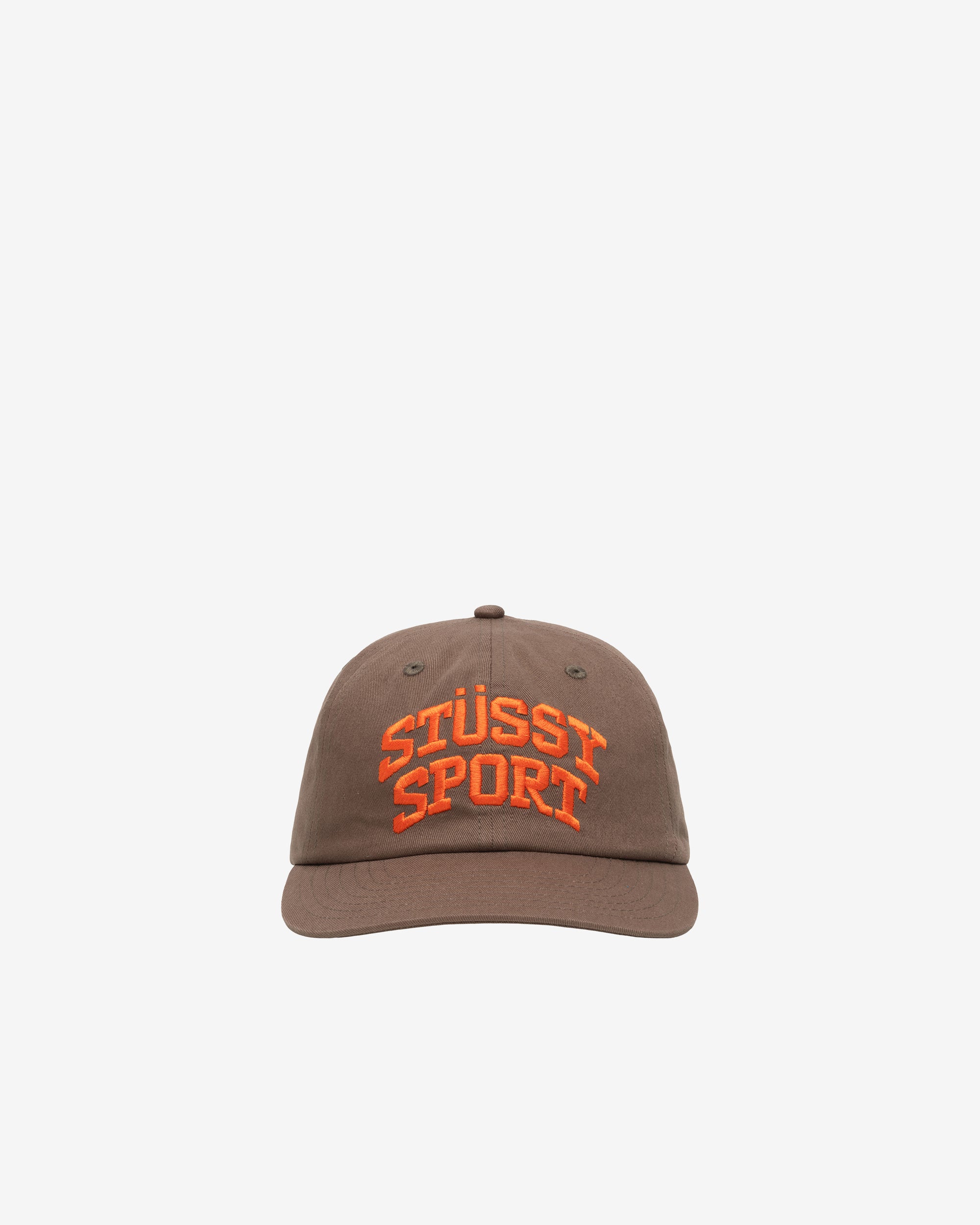 Mid-depth six panel cotton twill cap. Embroidery Stüssy sport logo at the front and crown logo at the back.