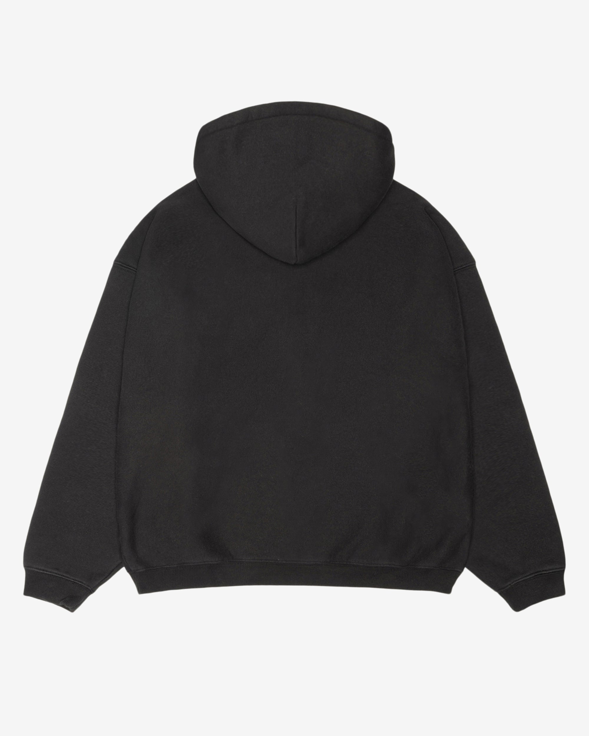 Relaxed fit zip-front fleece hoodie in heavyweight cotton. Longsleeve Round woven drawcord #5 YKK zip front closure Ribbed cuffs and hem Kangaroo pocket Relaxed fit Unisex 100% Cotton Imported