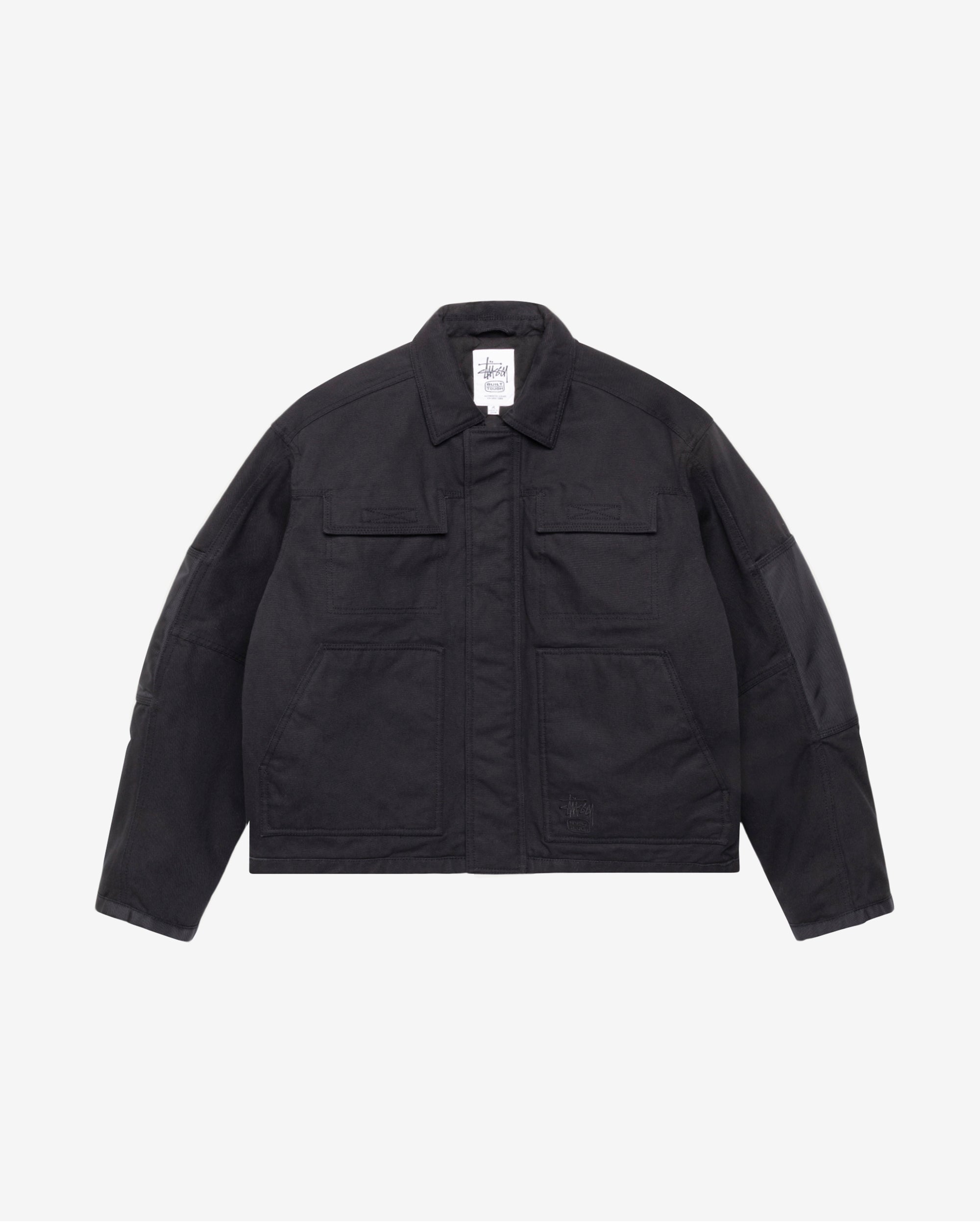 Boxy fit work jacket in cotton canvas with nylon detailingFully insulated with quilted twill lining