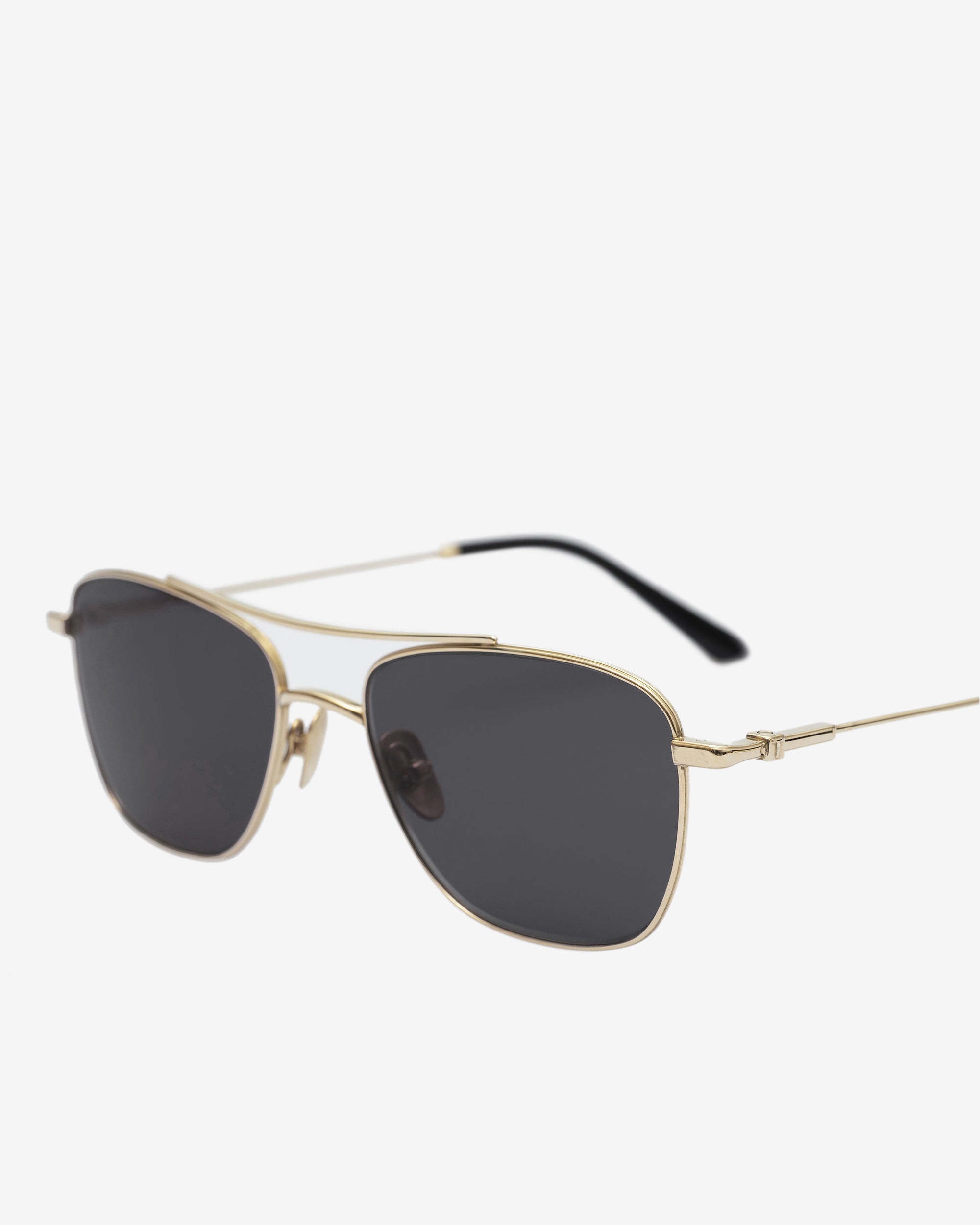 Rectangular titanium wire frameUltra-lightweight titaniumTitanium nose pads Acetate tipsGold frameBlack lens