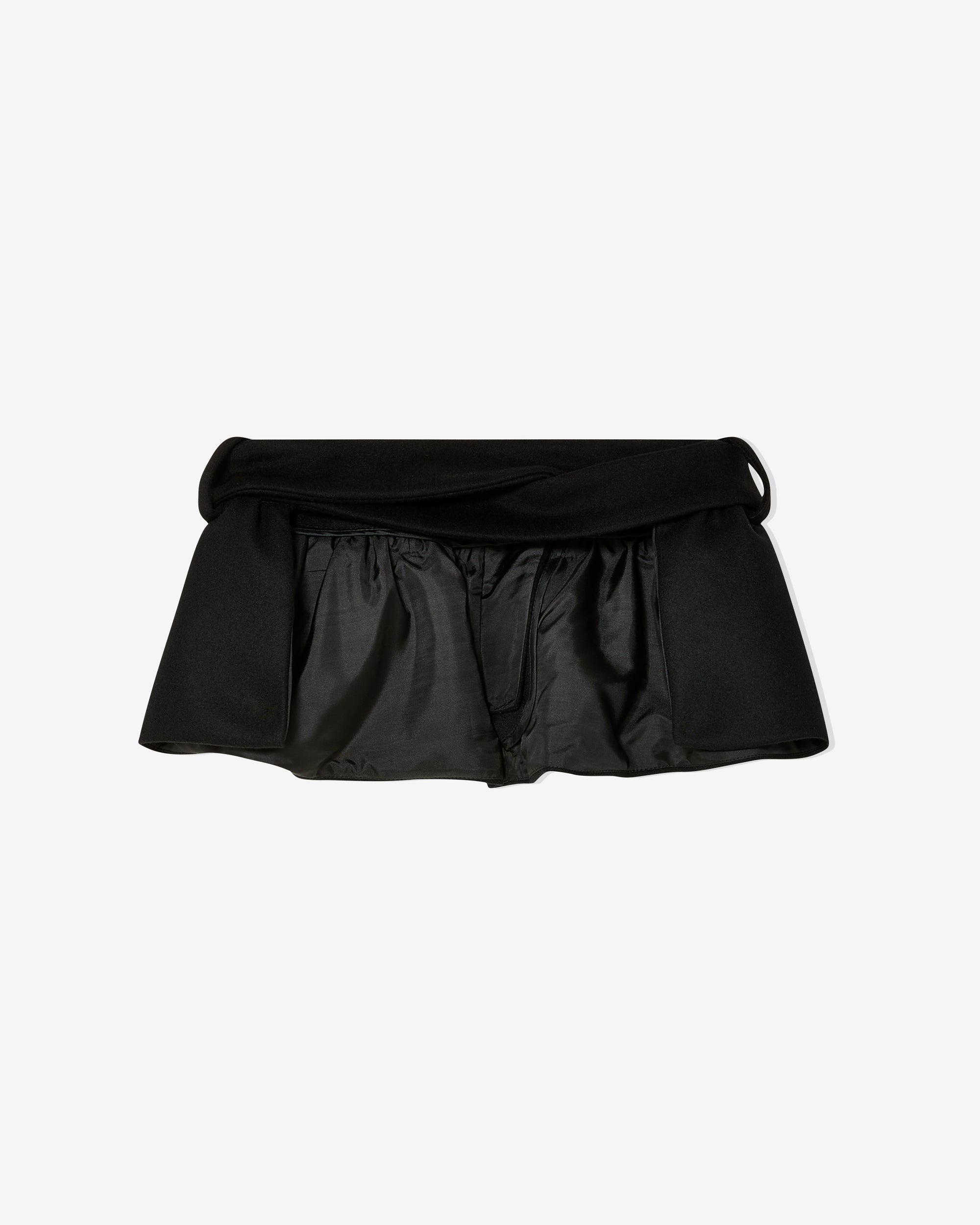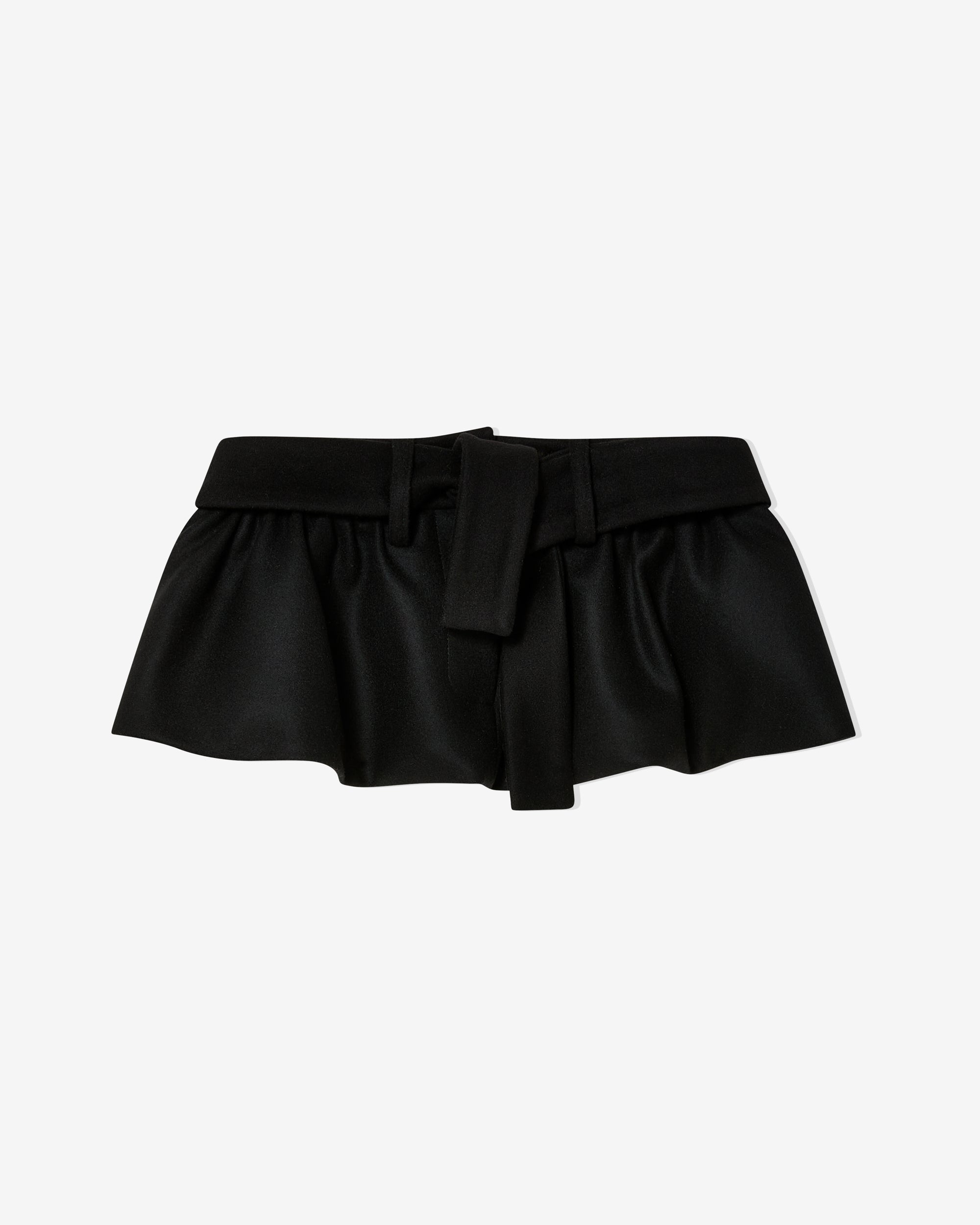Micro mini skirtTailored waistbandRuffled hem100% WoolMade in UK