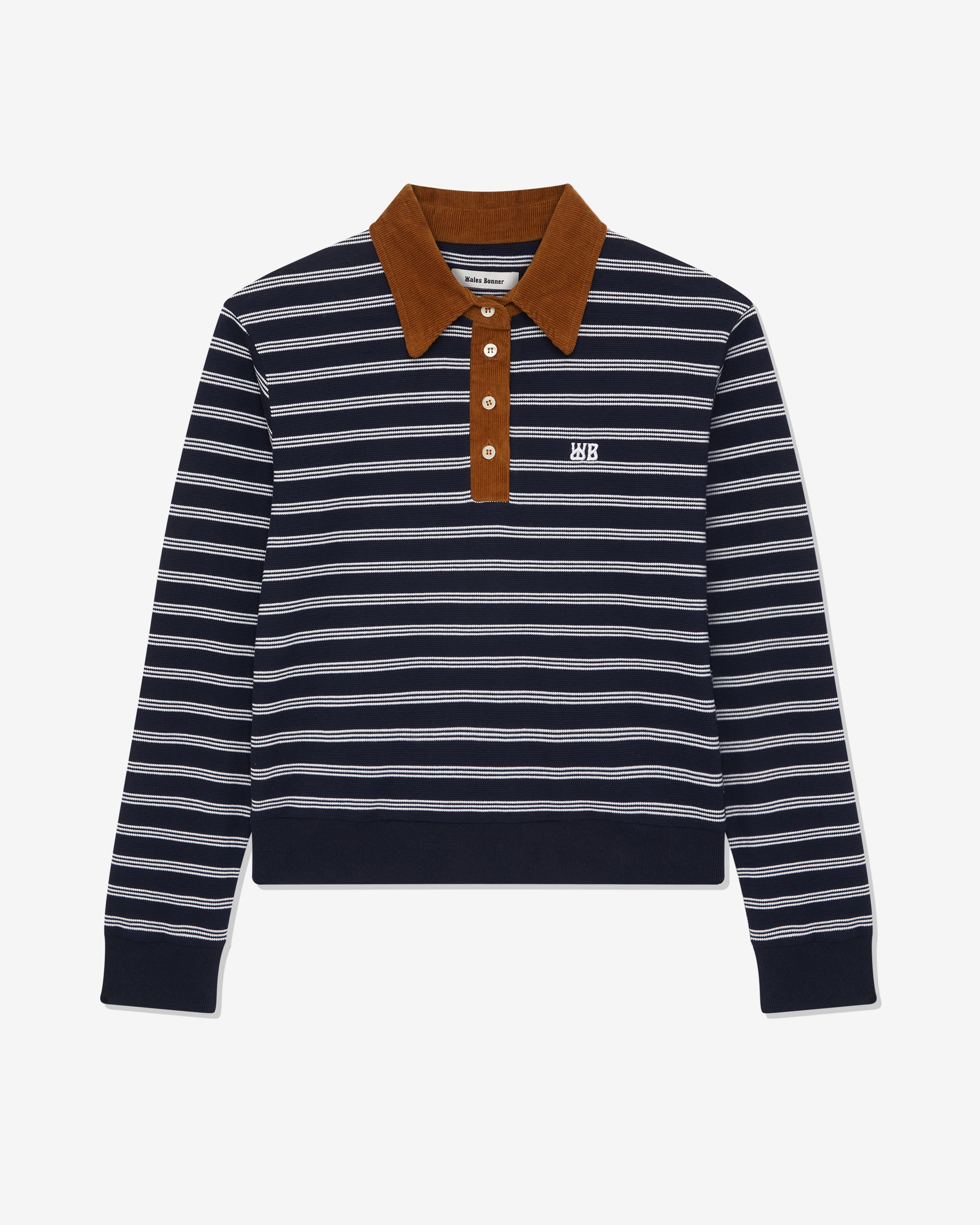 Striped Japanese pique poloContrast corduroy collarRegular FitLong sleevesRibbed cuffs and hem